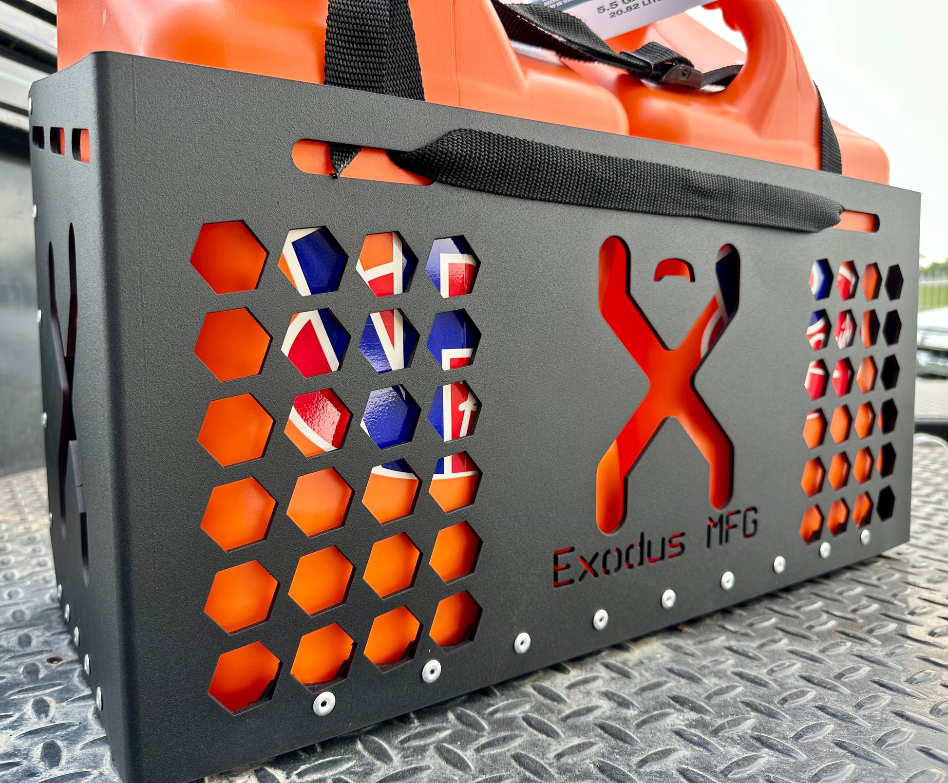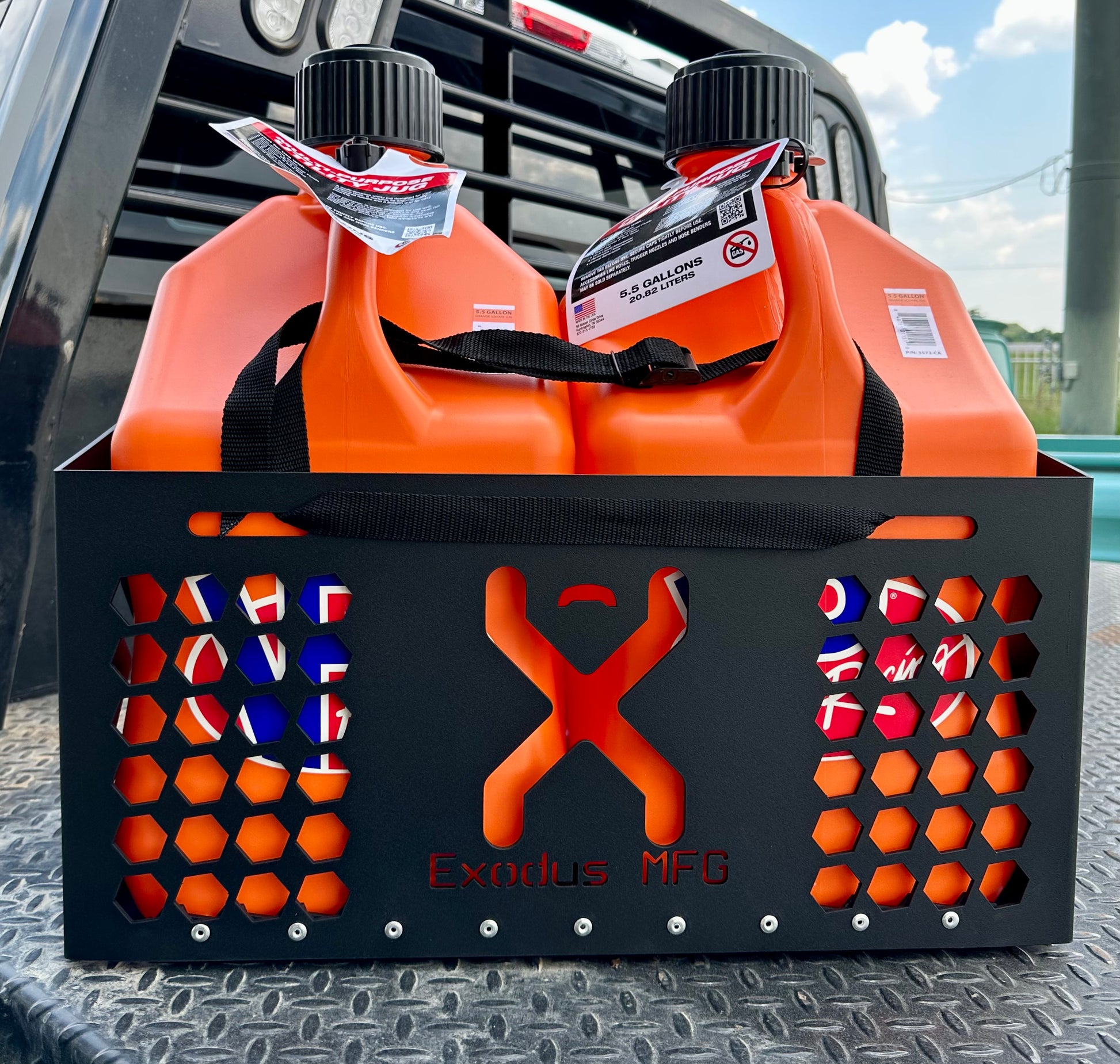 Exodus Manufacturing is proud to introduce our new line of fuel jug (can) holders for VP-style fuel jugs! These holders are 100% and Proudly Made In The USA, 100% in-house in our facility!